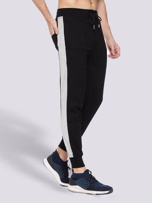 Side Stripe Black Cotton Track Pant for Men