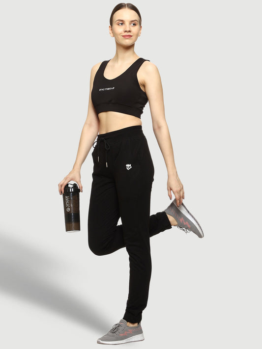 Black Elastic Bottom Cotton Track Pant For Women