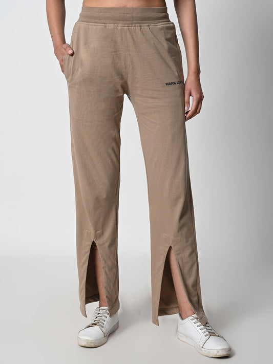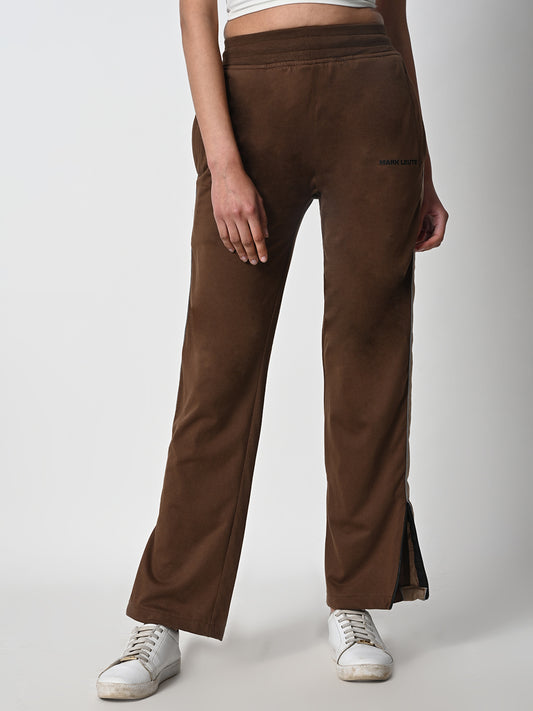 Reflective Side Stripe Cotton Track Pant for Women (Brown)