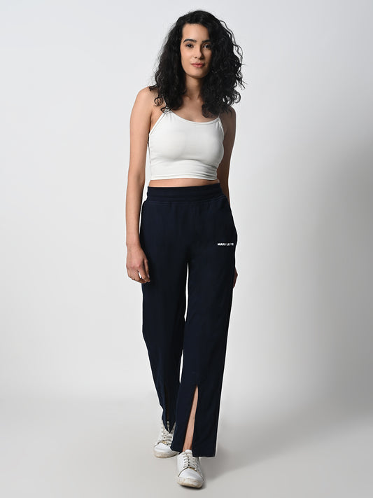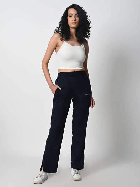Reflective Side Stripe Cotton Track Pant for Women (Navy Blue)