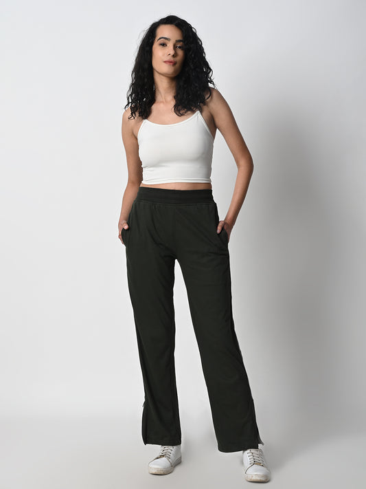Reflective Side Stripe Cotton Track Pant for Women (Olive Green)
