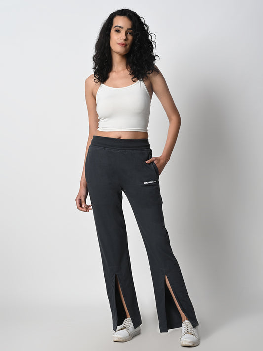 Reflective Side Stripe Cotton Track Pant for Women (Charcoal Grey)
